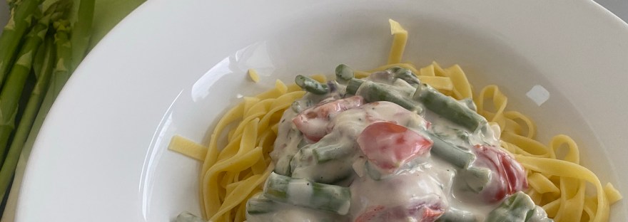 Lieblingsgemüse? Tomaten und Spargel! Hier in einer gesunden Kombi mit Pasta, wie immer superschnell und supergut!